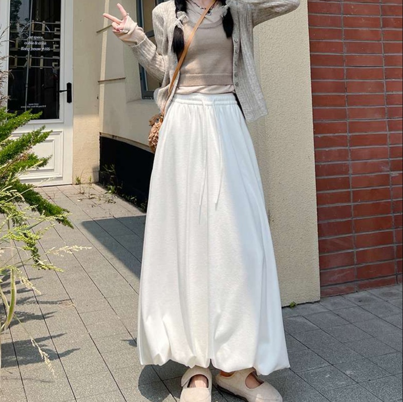 スカートのふんわりとした自然な広がりが、女性らしい上品な雰囲気を醸し出し、歩くたびに優雅な揺れ感を演出
