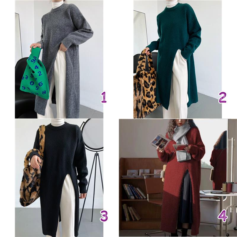 50代ファッションにぴったりの洗練されたロングニットセーター。