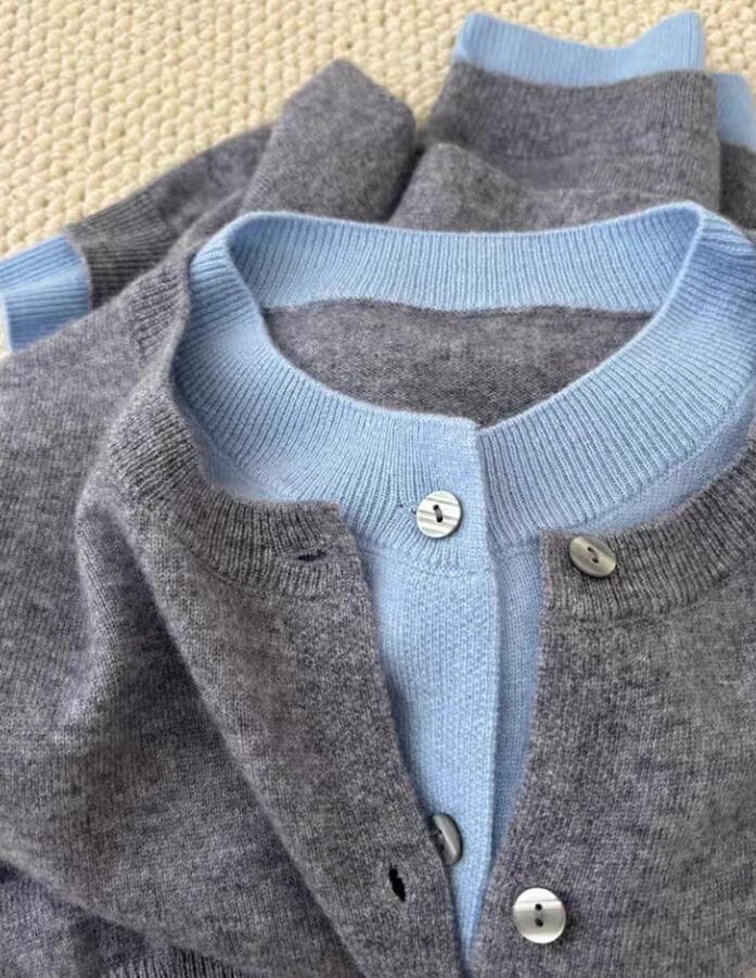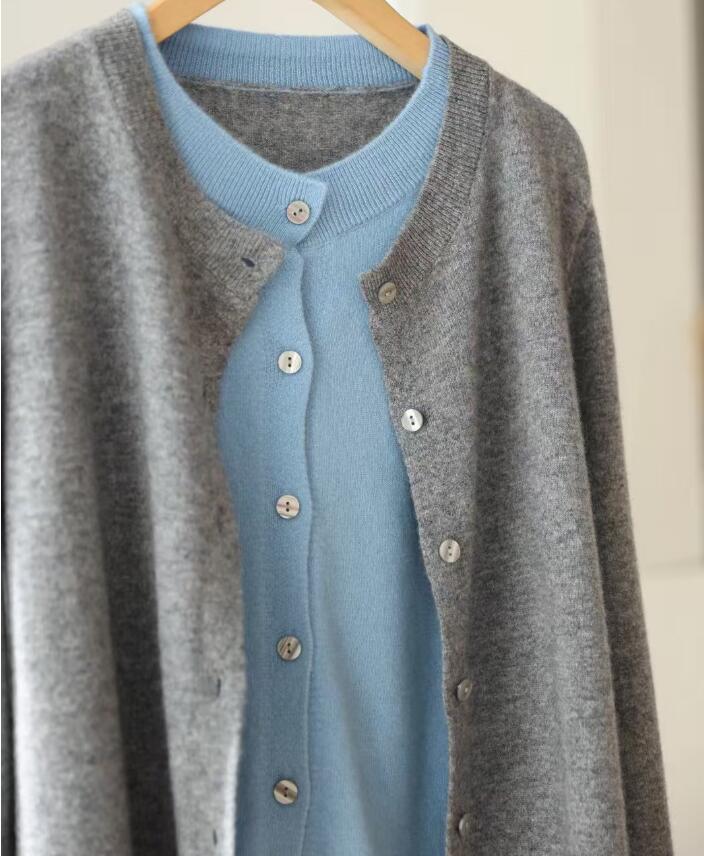 50代ファッションに最適な落ち着いたカラーの上品なカーディガンです。