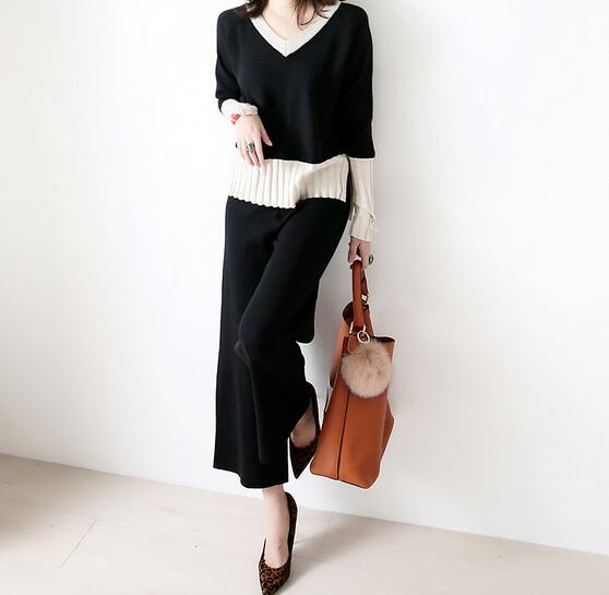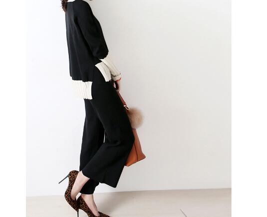 50代ファッションにぴったりの上品なニットブラウスとワイドパンツのセットアップです。