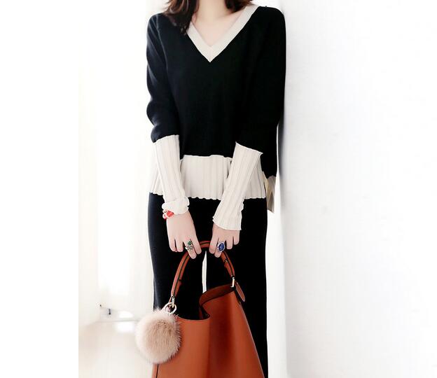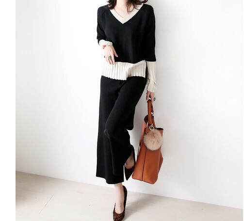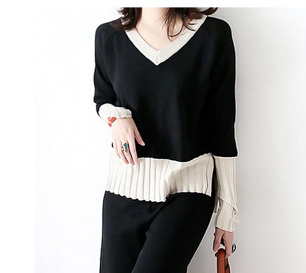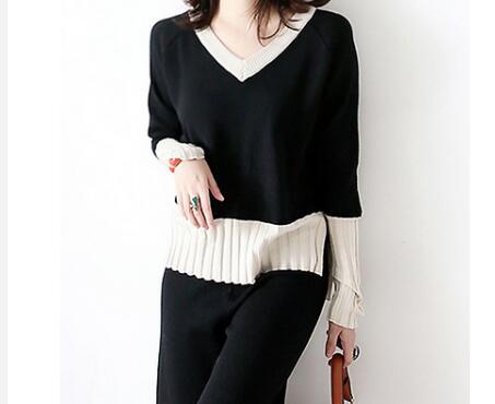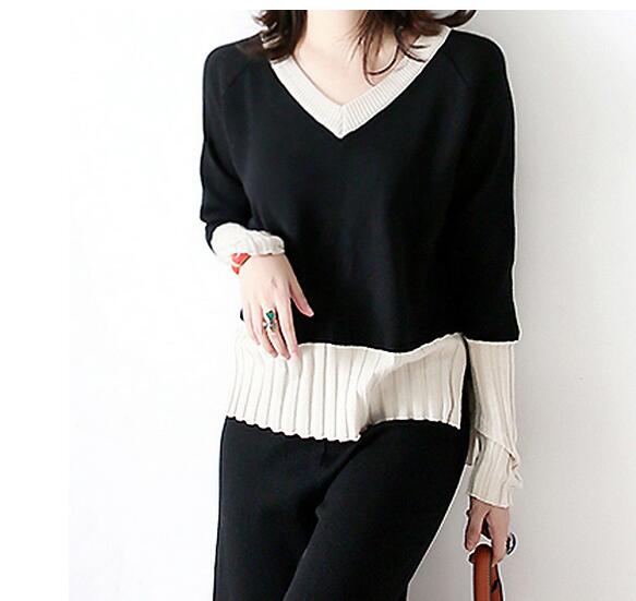 ブイネックのニットトップスは袖口にプリーツデザインが施され、エレガントな印象を演出します。