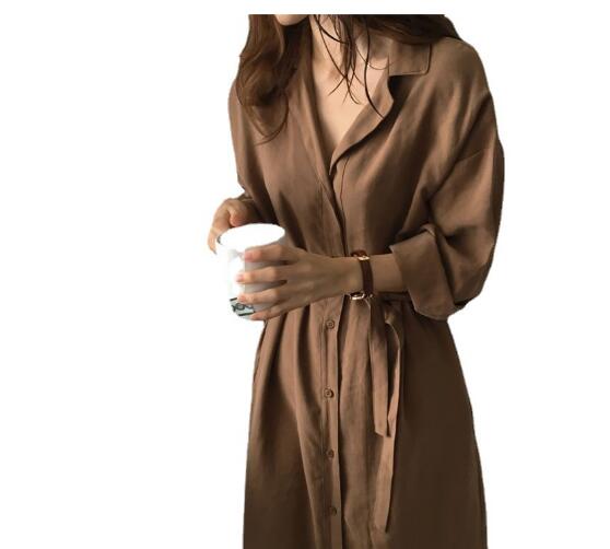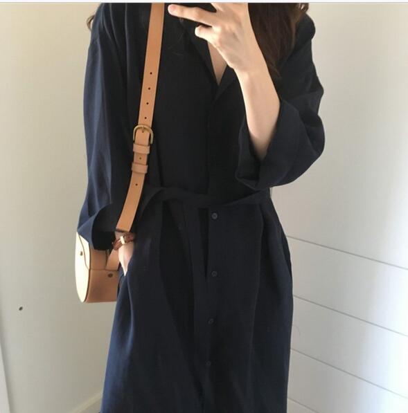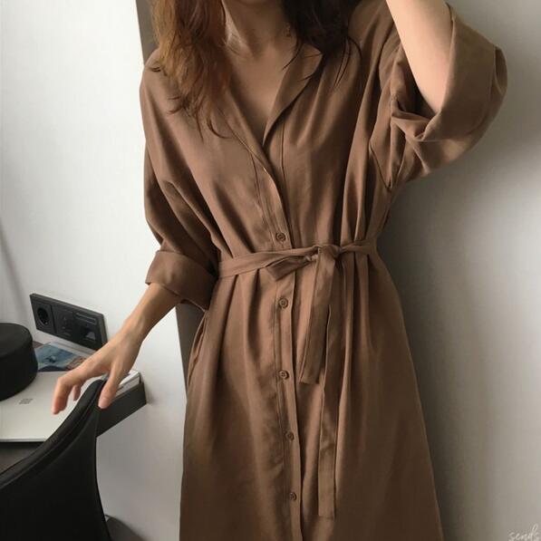 50代ファッションにぴったりの上品なラペル襟シャツワンピース。