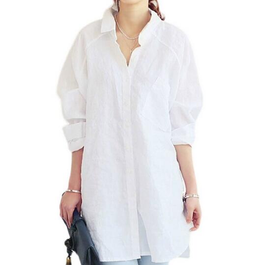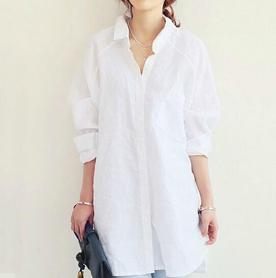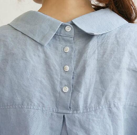 50代ファッションにぴったりの上品なリネン素材の長袖ブラウスです。