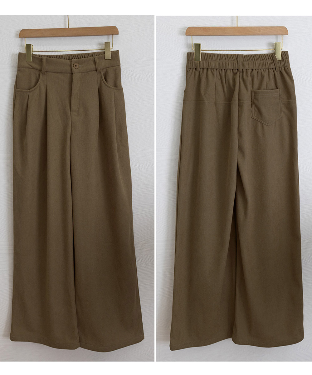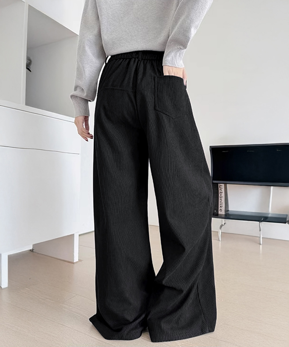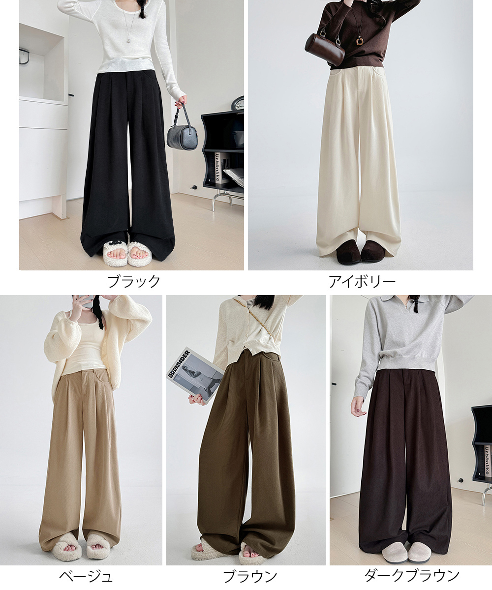 50代ファッションに最適な落ち感のある高品質コーデュロイ素材で仕上げたワイドパンツ。 ハイウエスト設計で体型カバーと脚長効果を実現し、ゆったりとしたシルエットが上品な大人の着こなしを演出。 後ろウエストゴム仕様で快適な穿き心地をプラス。
