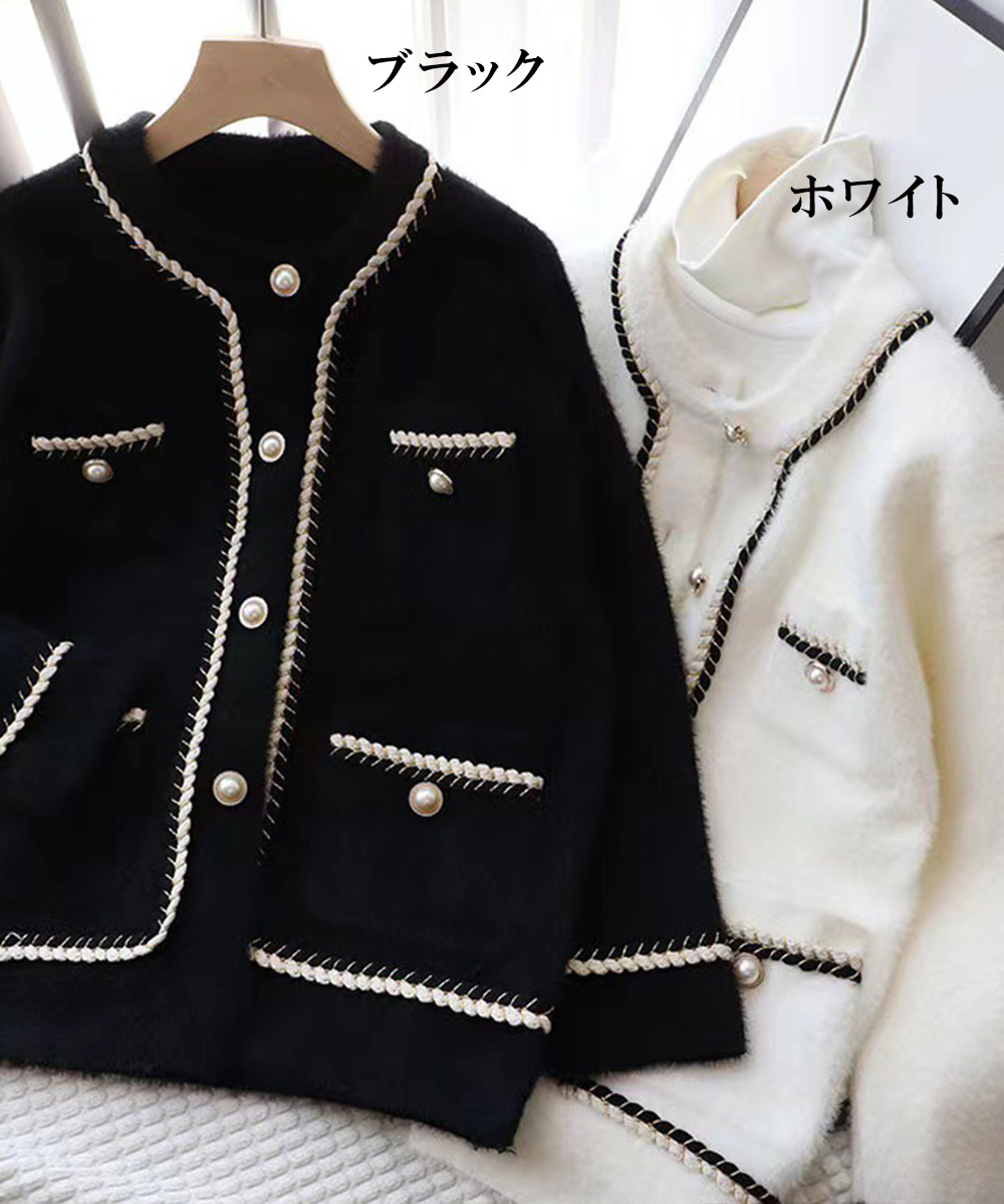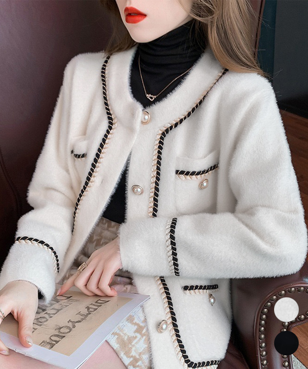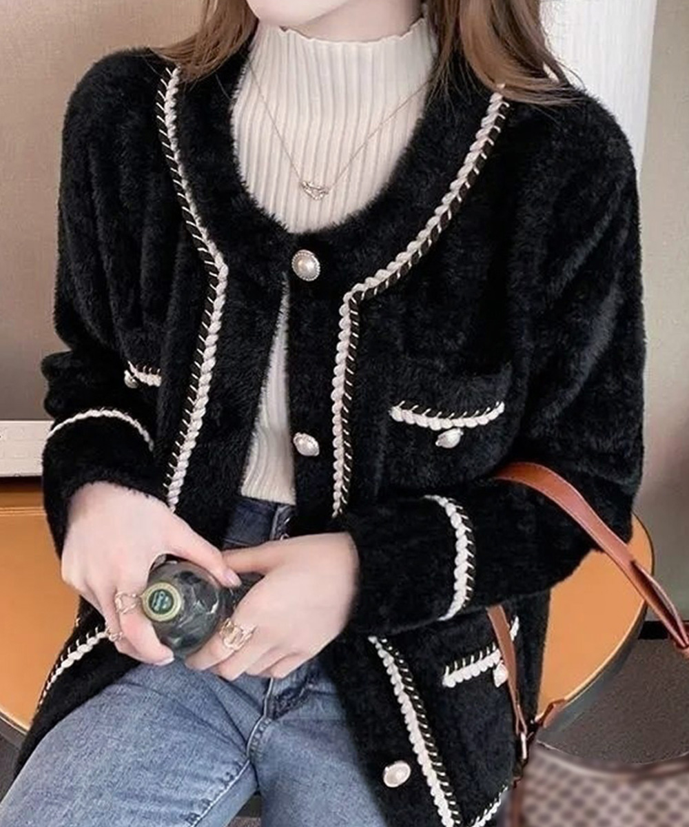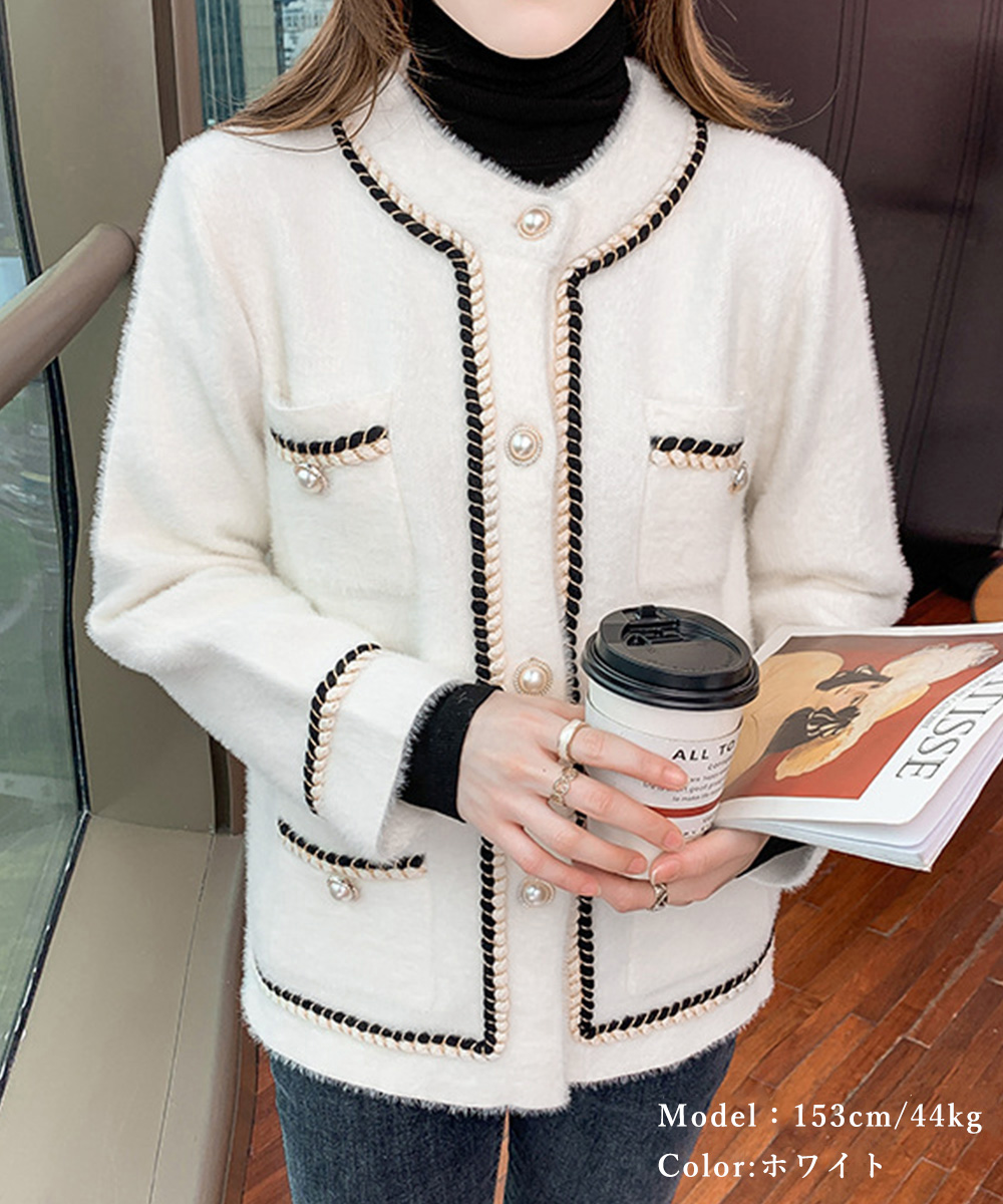 50代ファッションにぴったりの上質なモヘア風ニットカーディガン。