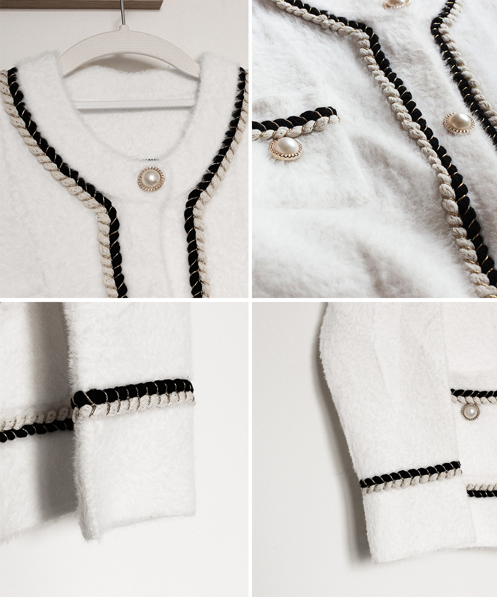 しなやかな肌触りと軽やかな着心地で、パール風釦がエレガントなアクセント。