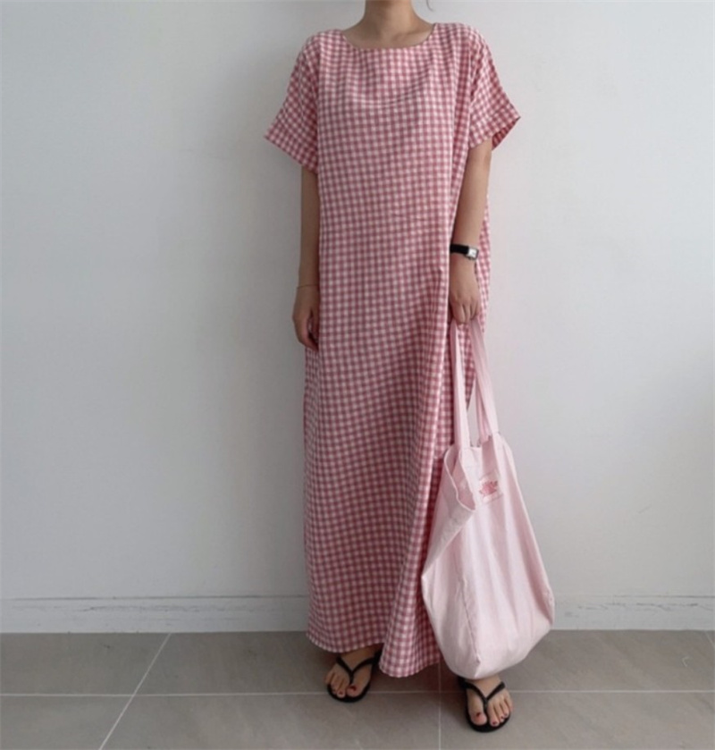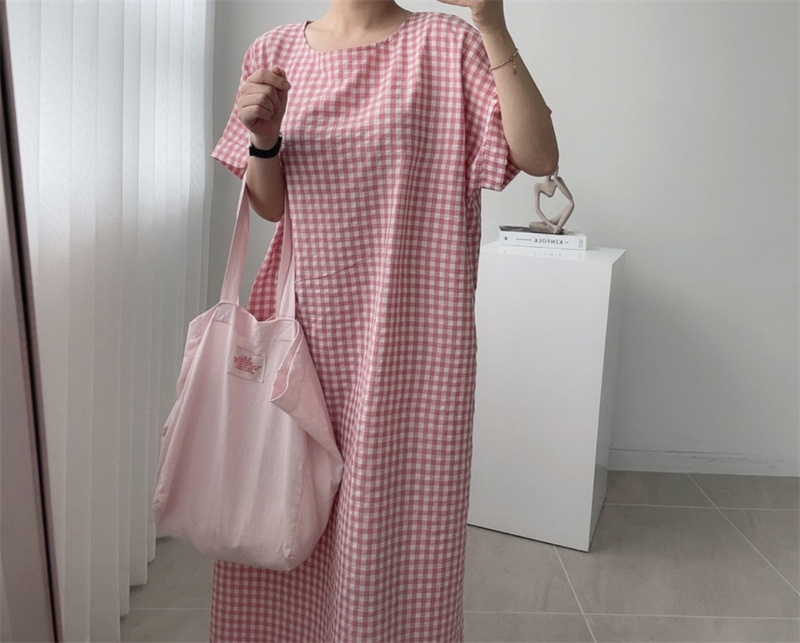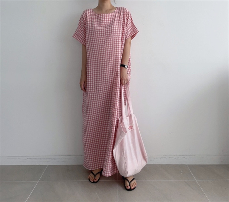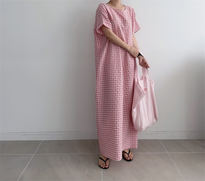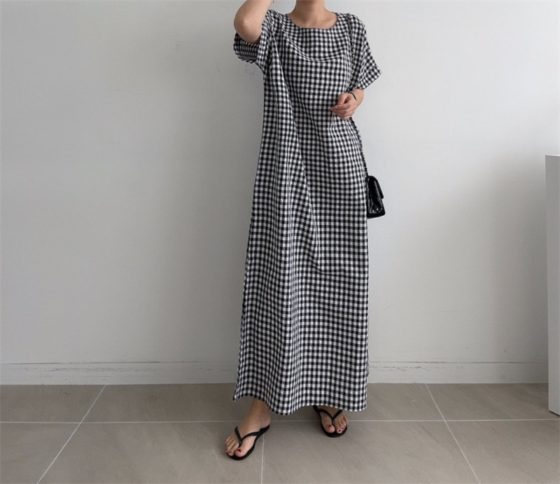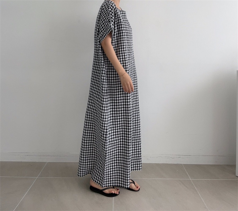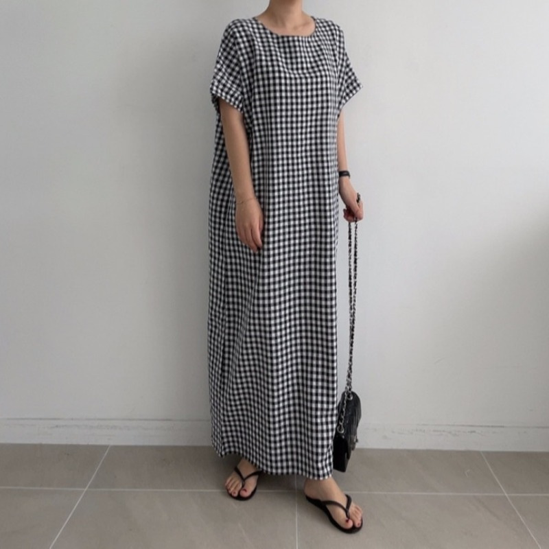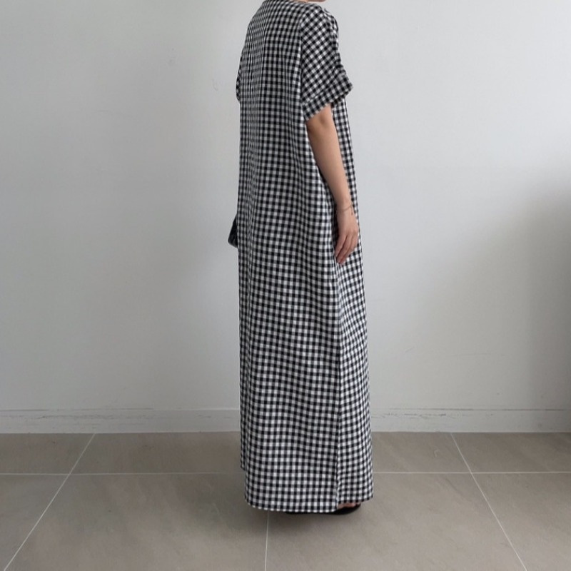 50代ファッションにぴったりの上品なチェック柄ロングワンピース。
