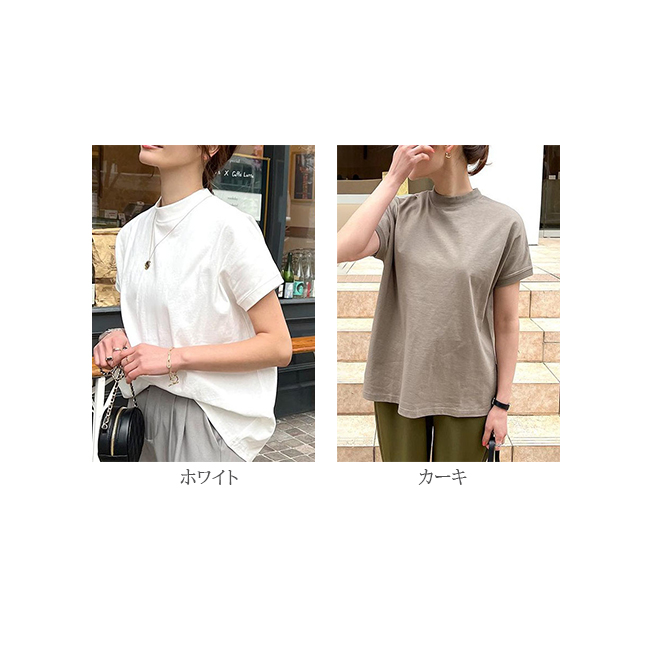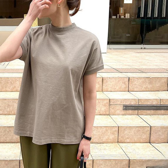 50代ファッションにぴったりの上品なプチハイネックカットソー。