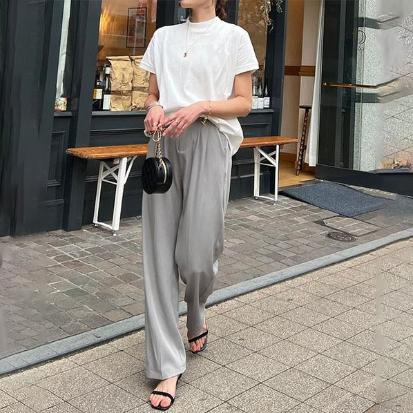 ゆったりとしたシルエットで体型カバーしながら、洗練された印象に。